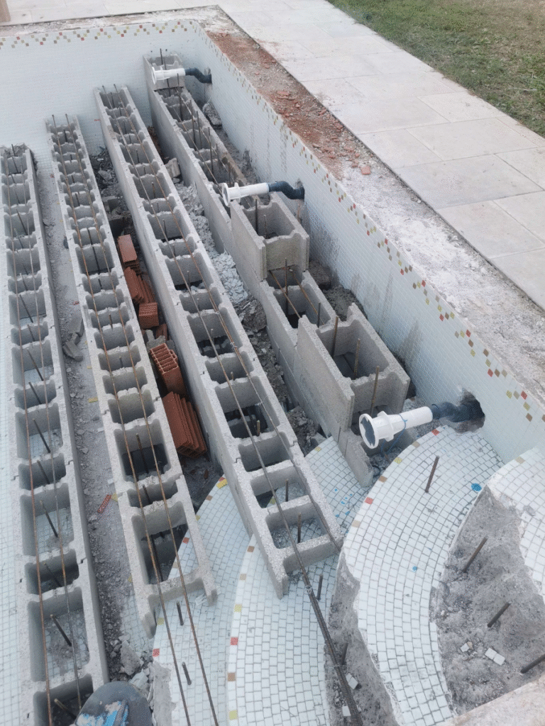 Patrick travaille dans la piscine depuis 1993 et dirigeait déjà une entreprise couvrant l’entretien, la construction et la rénovation. Avec des années d’expérience terrain et une vraie maîtrise technique, il voyait clairement qu’un besoin restait mal couvert : la rénovation, trop souvent traitée comme un “petit bout” d’activité.