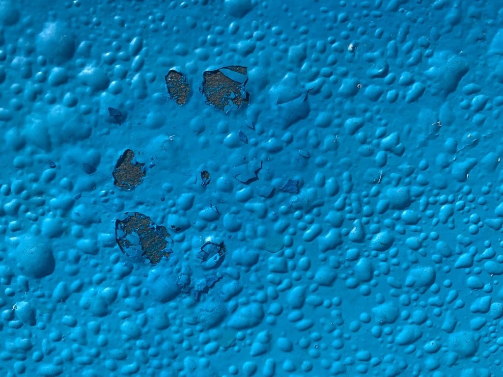 ❌ N’assure pas l’étanchéité : la peinture vient s’appliquer sur un support qui assure l’étanchéité : un enduit hydrofuge appliqué directement sur la structure du bassin. En clair la peinture vient simplement colorer un enduit et donc les avantages et les inconvénients de l’enduit se transfèrent à la peinture (voir ci-dessous)