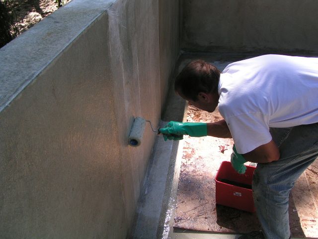 Pour le polyester appliqué sur une structure externe comme une piscine en béton, les choses sont différentes. Le principe est d’appliquer une fine couche de 2 à 3 mm sur le support existant. Cette couche là sert d’étanchéité et n’est pas structurelle, c’est à dire qu’elle ne tient pas seule si on enlève le mur en béton.